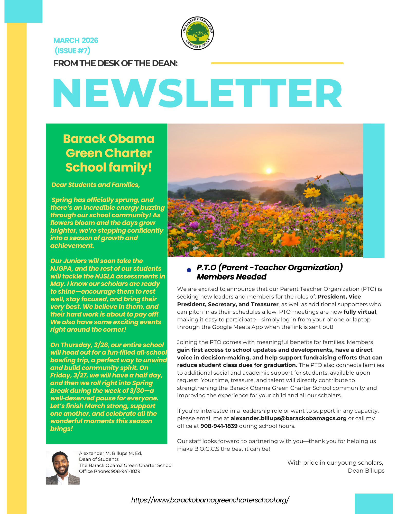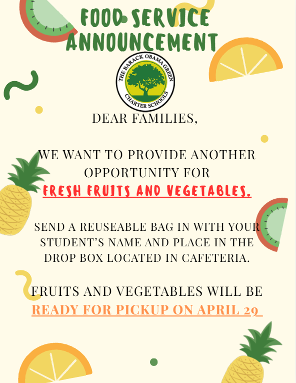 “Graduates of the Barack Obama Green Charter School will demonstrate exceptional capability in communication, critical thinking, problem solving, and responsible behavior. They will acquire and respect knowledge, be life-long learners, and good citizens.”